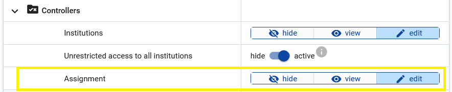 All controller users of an institution can have access to the project as soon as an assignment is done. All users who have access to Application → Project privileges can also see the respective assignments: