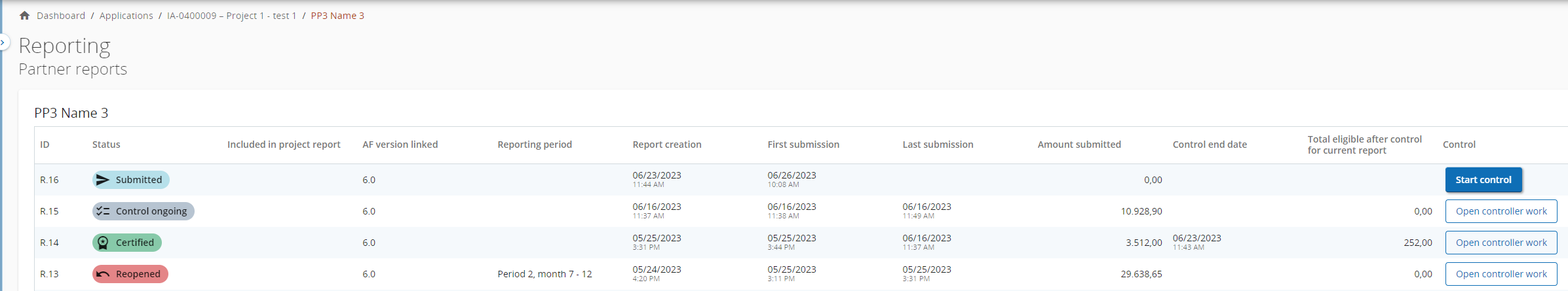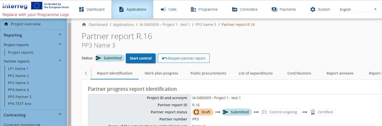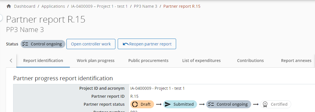 A controller can potentially reopen a partner report, if programmes rules allow. Please find details about how this can be done and with which consequences in section Reopening partner report .