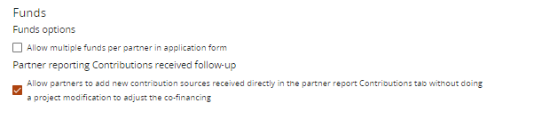 There is an option to allow partners to add new contribution sources directly in the partner report. If this tickbox is unticked new contribution sources can only be added through a project modification in newly created reports.