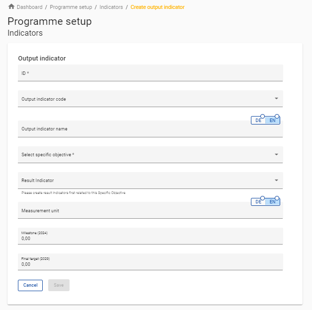 A programme specific ID has to be inserted for each Output indicator.