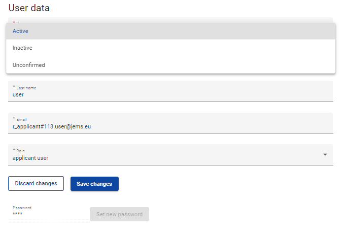 Confirmation of user registration | Any user with status Unconfirmed |