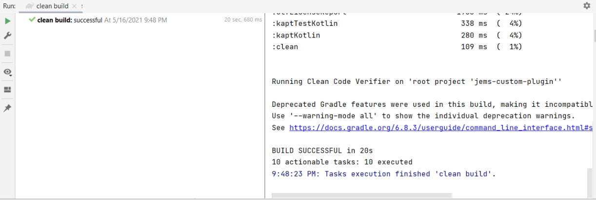 - Gradle tasks are visible