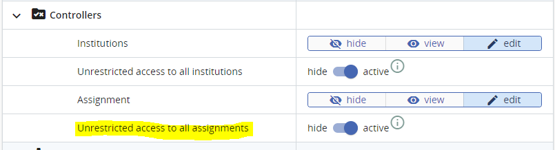 Additional privilege (‘Unrestricted access to all assignments’) on Controllers → Assignment (credits to CE)