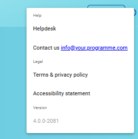 Helpdesk or e-mail is only visible if Jems is properly configured.