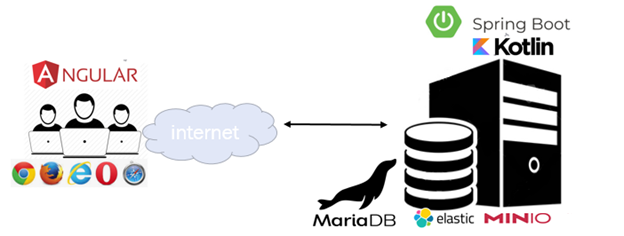 Further, we recommend to run all necessary components in containers. For that purpose, a Docker Compose file is supplied as a starting point which can be adapted to specific needs. It is made sure that there are containers available and the web application can be additionally built and started up as Springboot containing an embedded Tomcat 9 Webserver. Thus, the only mandatory requirement is the Java Virtual Machine (JVM).