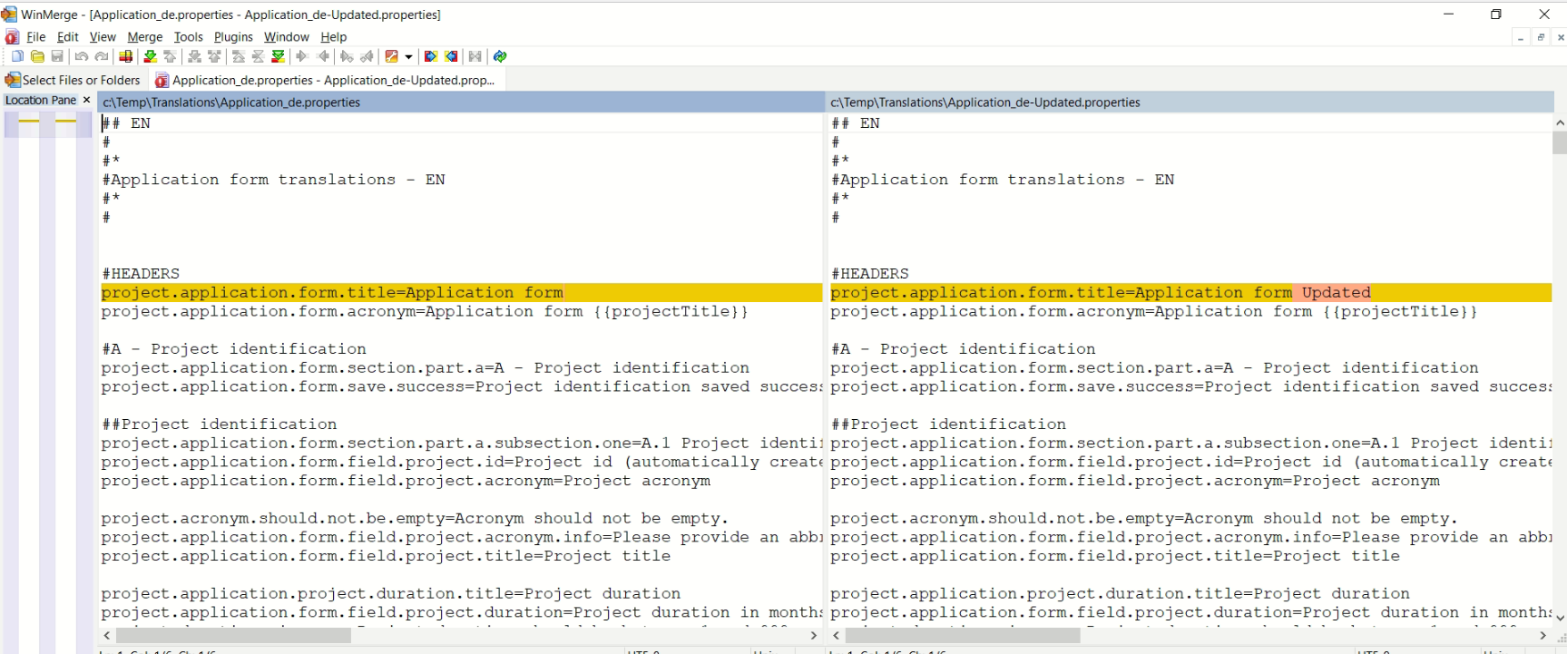 Alternatively, the WinMerge tool can be used to compare translation keys.