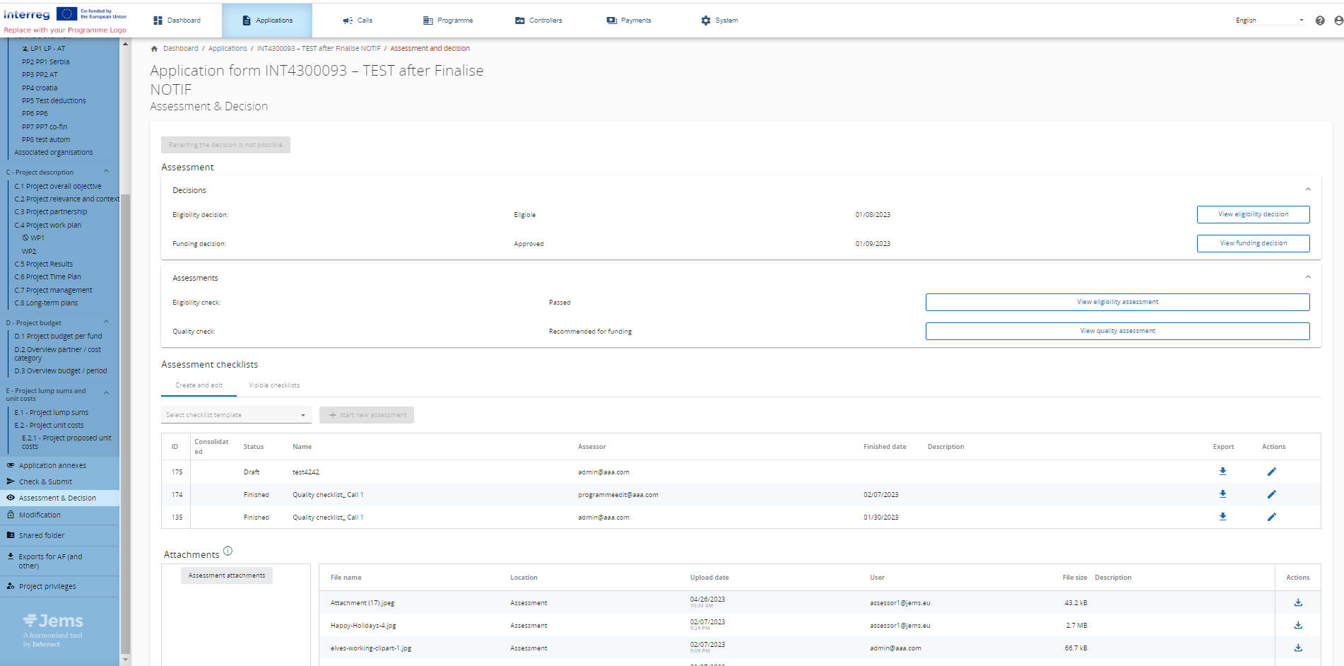 If the decision is “Project is eligible”, the status of the application changes to “eligible” and it can proceed to the funding decision.
