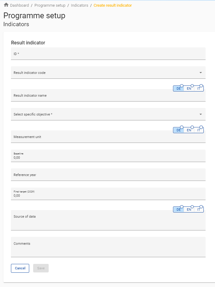 A programme specific ID has to be inserted for each Result indicator.
