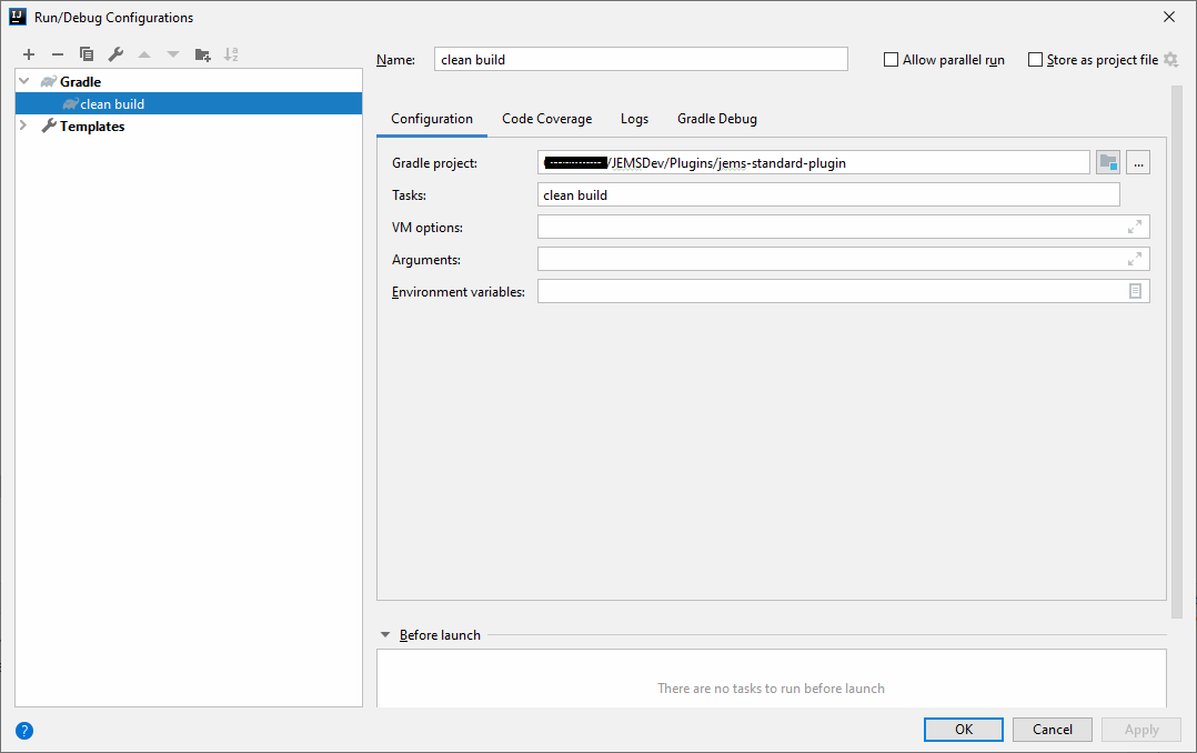 Click Run → Edit configurations to specify Gradle Run/Debug configuration