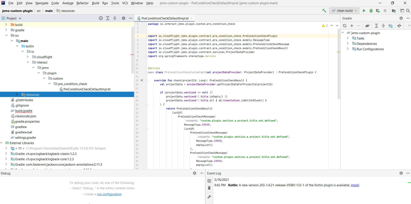 interface PreConditionCheckPlugin : JemsPlugin {