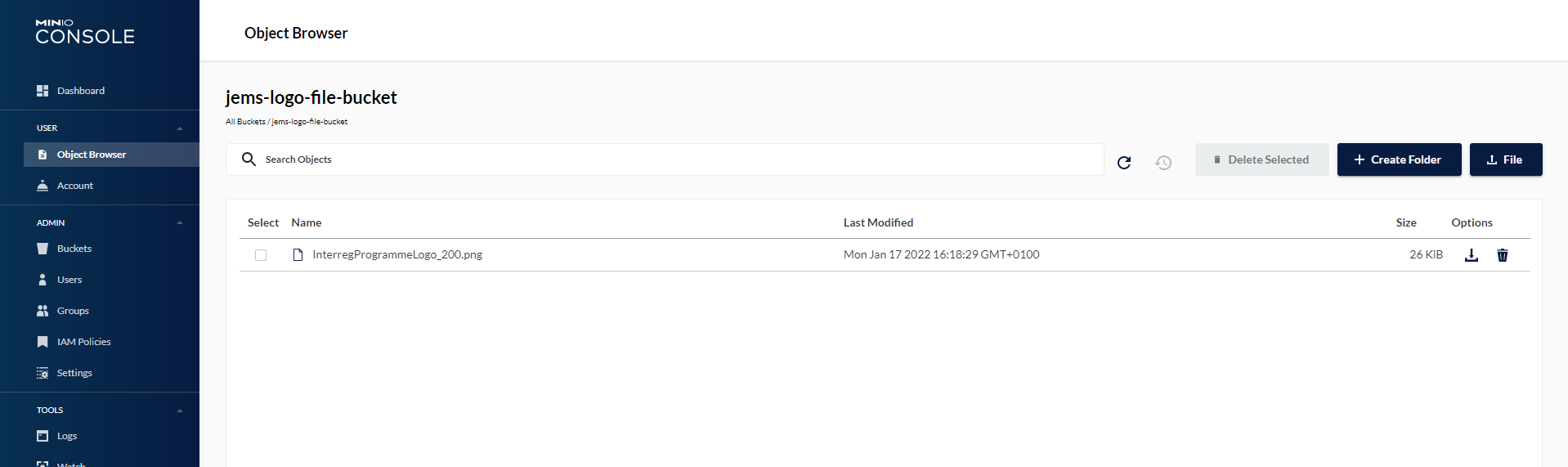 In the Minio browser